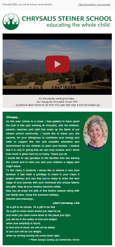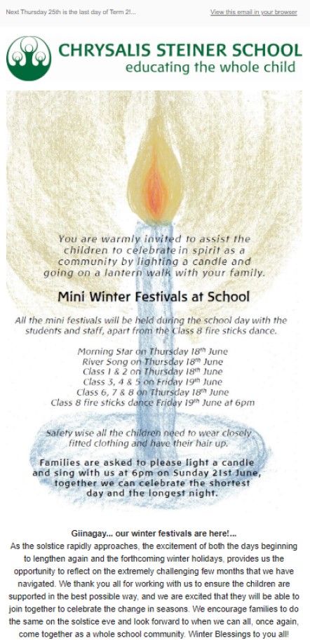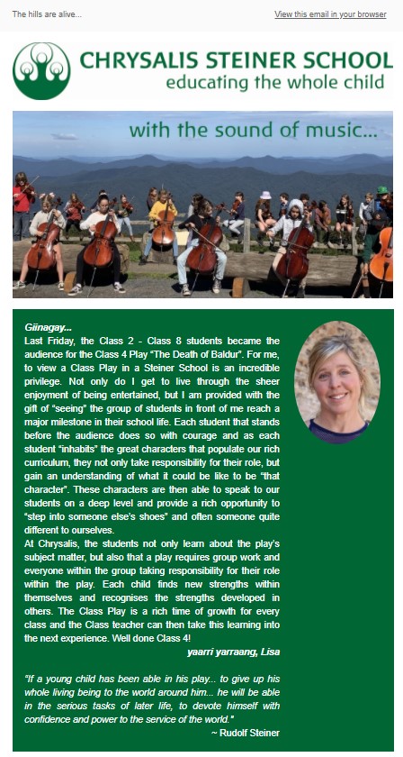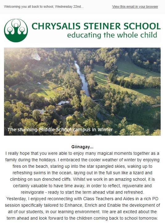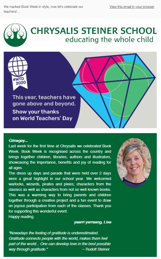 We send a newsletter out to the broader community, our parents and our staff once a fortnight. You can subscribe here to join our community. Below are our most recent newsletters.
