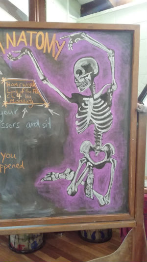 From here we ventured into the realm of anatomy and exploring the incredible human body. Our approach was carried out with great reverence and respect as we investigated what makes humans similar to other living organisms, what makes us different and how is it that our body does what it does. The class 8 students enjoyed discovering who had the most “Fibonacci-esque” bodily proportions. They also had a wonderful time getting to know Harry our visiting model human skeleton who didn’t say much but smiled the entire time.
