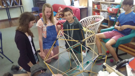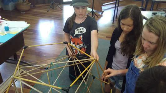 From History to Science to Mathematics, the class 8 students finished this term off immersed in the world of platonic solids. This main lesson brought the big picture of form, beauty and the natural order of geometry inherently present throughout our physical world. Why is it that some viruses or semi-precious stones or microscopic sea creatures exist in the shape of an icosahedron or octahedron? This and many other fascinating questions were contemplated as the students practiced the art of geometric drawing, bisecting angles using a compass and ruler. We explored the concepts of two and three dimensionality of form by drawing polygons and constructing polyhedrons out of paper as well as dowel. Instead of teaching the students to blindly accept mathematical formulae, we as a class demonstrated and proved the formulae in a very “hands on” manner which provides a tangible sense of mathematics as a living universal language. The students will complete their platonic solid constructions in woodwork by creating a beautiful dodecahedron lantern in time for the winter festival.