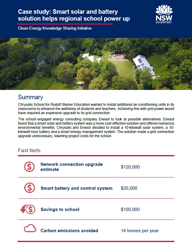 Grant-funding providers, NSW Department of Planning, Industry and Environment, recently released the final case study for Chrysalis’ Smart solar and battery solution that received $30,000 from the government under the Clean Energy Knowledge Sharing Initiative.