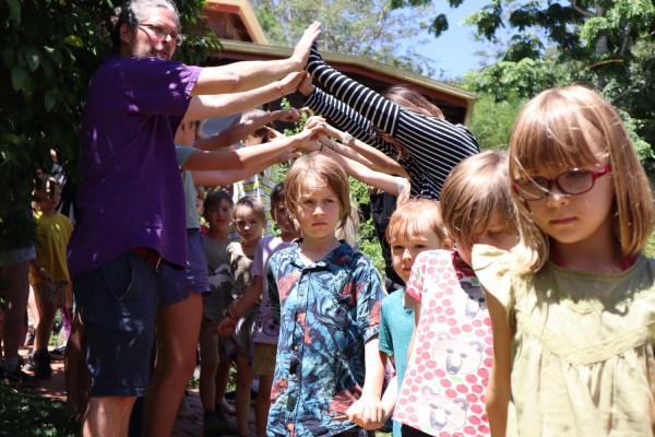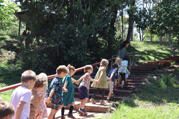 The Class 8 students and staff formed an arch outside of River Song for the children led by Gail as they made their way down to the bottom of the path where Soli was awaiting them to take them up to their new Class 1 room.