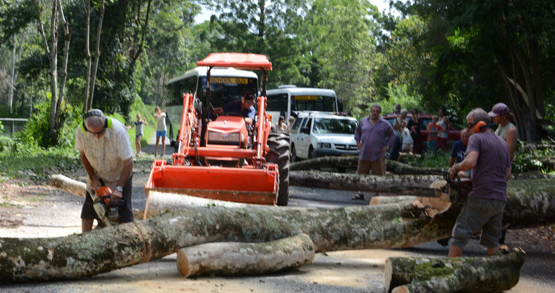 As you know, last Thursday, as the children were already loaded on the buses ready to head into town, a large tree trunk came down, blocking Darkwood road. The buses were effectively trapped on the school side of the fallen tree. In an amazing show of community spirit, the valley went to work to clear the road. Within minutes, Chrysalis staff were on-site to assess the situation and to see how best to assist in getting the road cleared and the children on their way. Sid Hazell from our maintenance crew, with the help of local furniture maker Russel Thompson were on the chainsaws, and with the welcome skills of Chrysalis parent Daniel Schreenan and his front-end loader, they managed to move several tonnes of timber within 35mins and get the buses on their way into town. This was an amazing effort. Shortly after this the council’s workers arrived to complete the job.